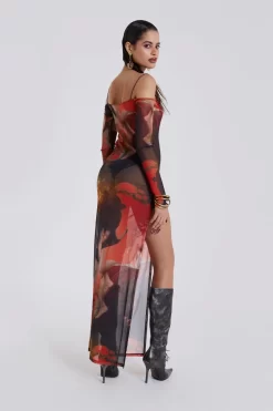 Jaded London Cindy Plunge Maxi Dress In Orange