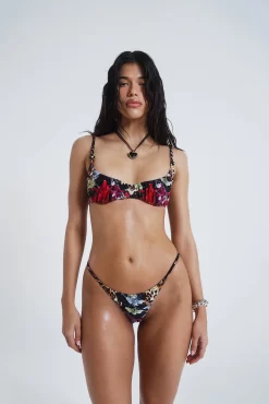 Grunge inspired, our dark romantic leopard print cup bikini top features ruched fabric detail along with twisted straps.