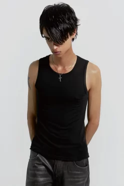 Our Black Mist Vest is constructed with sheer fabric for a soft hand feel in a black colourway. The sleeveless vest is cut in a slightly cropped fit with a twisted side steam detail.