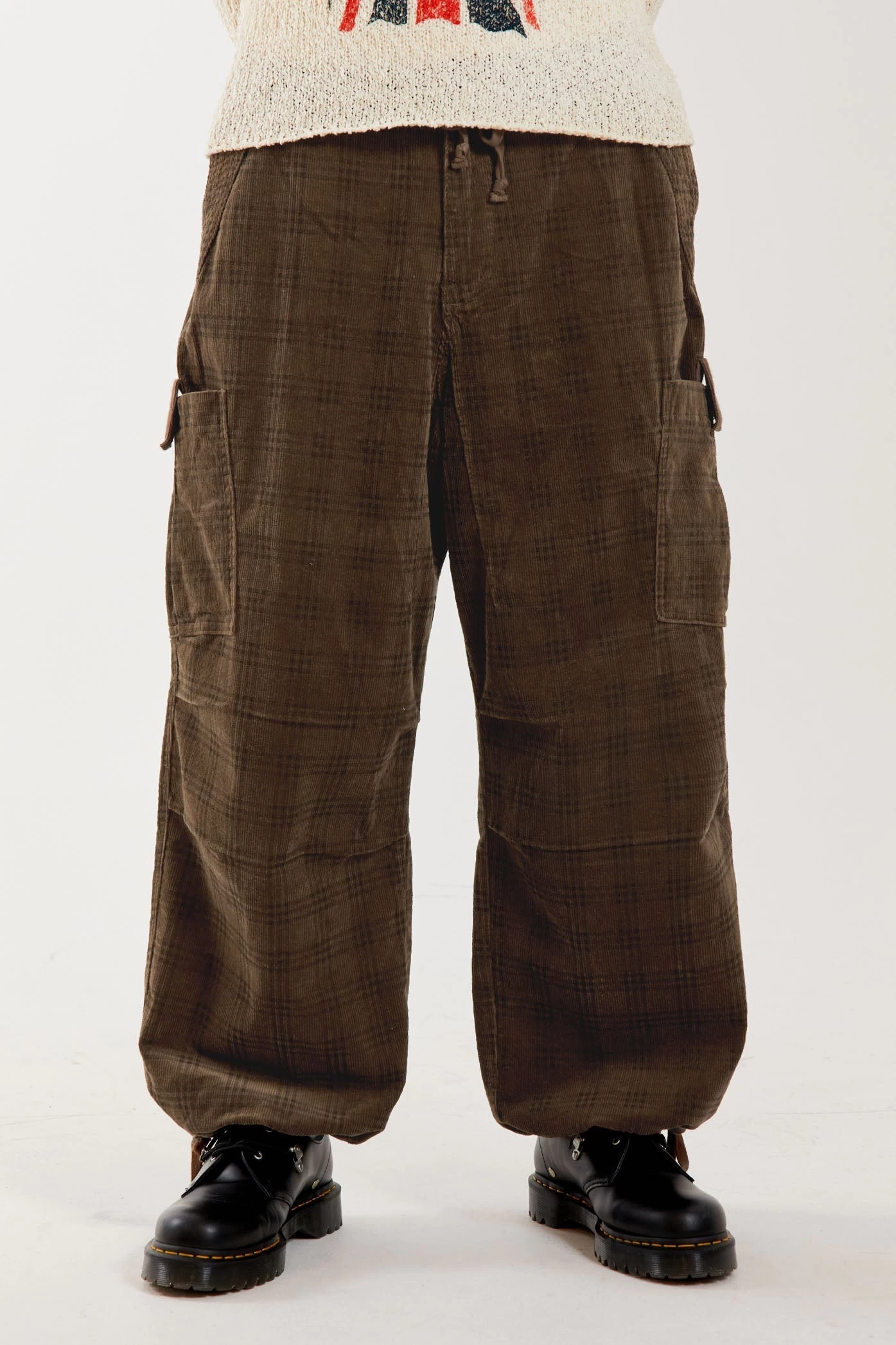 Brown Cord Check Military Oversized Cargo Pant