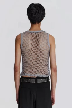 Elevate your wardrobe with the Chain Grey Vest. Crafted in a woven fishnet fabric in a grey colourway, this vest top is designed in a shrunken fit with ribbed neck and armhole detailing.