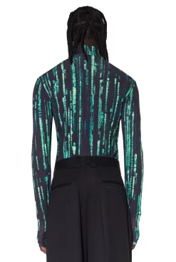 Green Code High Neck Thumb Hole Long Sleeve Top