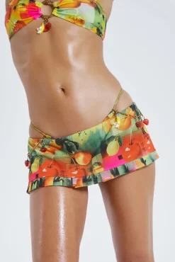 Elevate your swimwear wardrobe with this beach skort. Crafted from a lightweight mesh fabric with a pixelated fruit print. This mini-length skort is accompanied by a hot-pant underskirt with a matching bikini available.