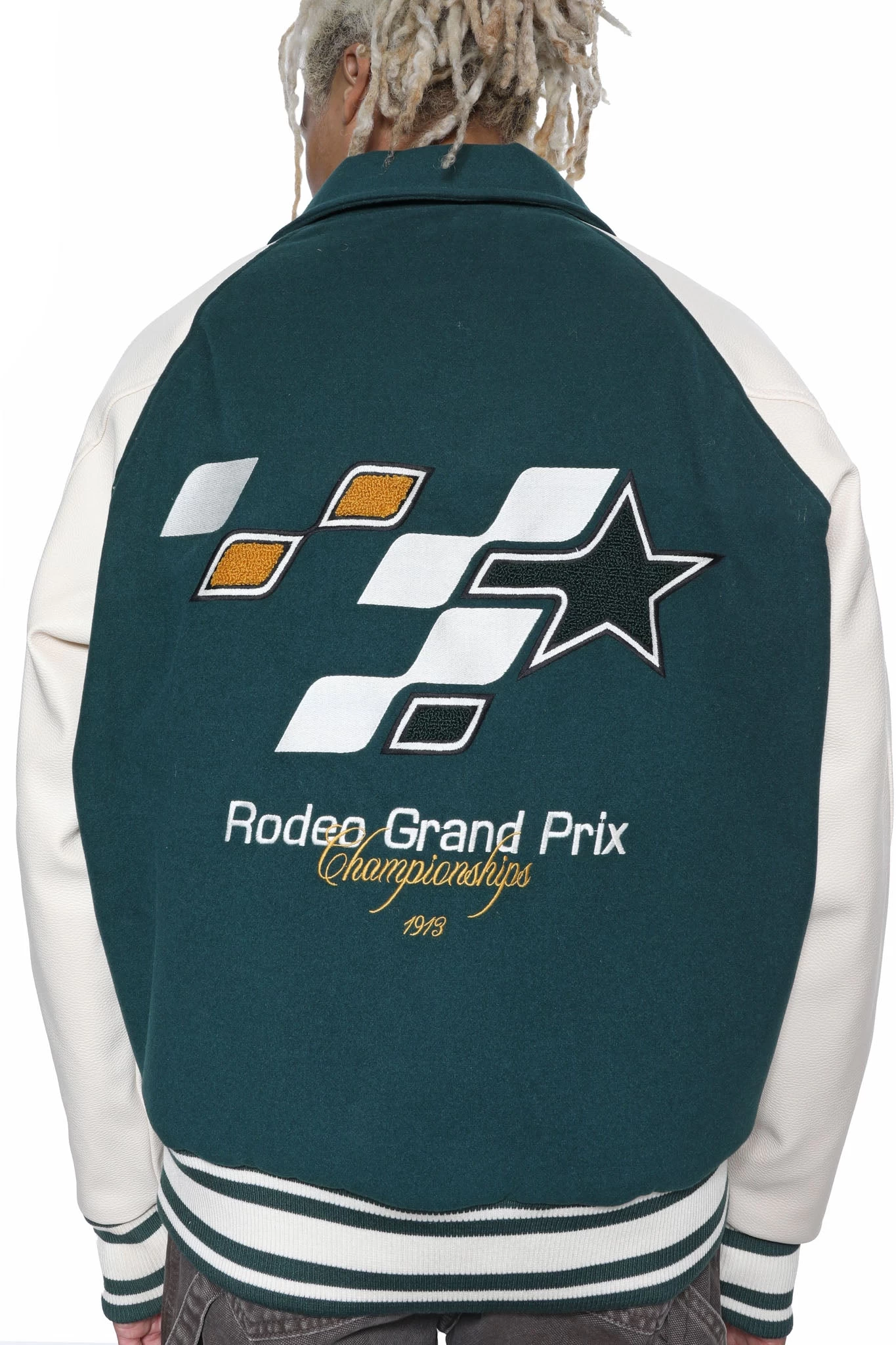 Off White & Green Motocross Varsity Jacket
