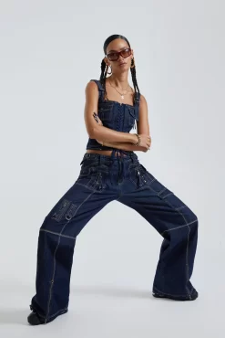 - Matching denim corset top available