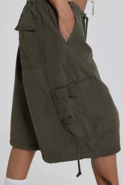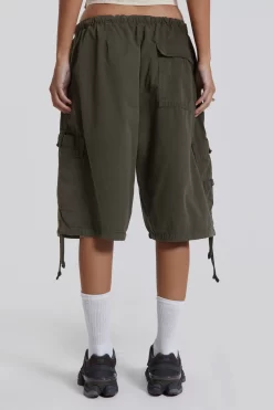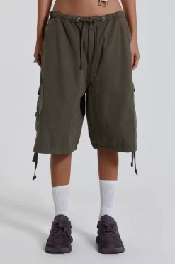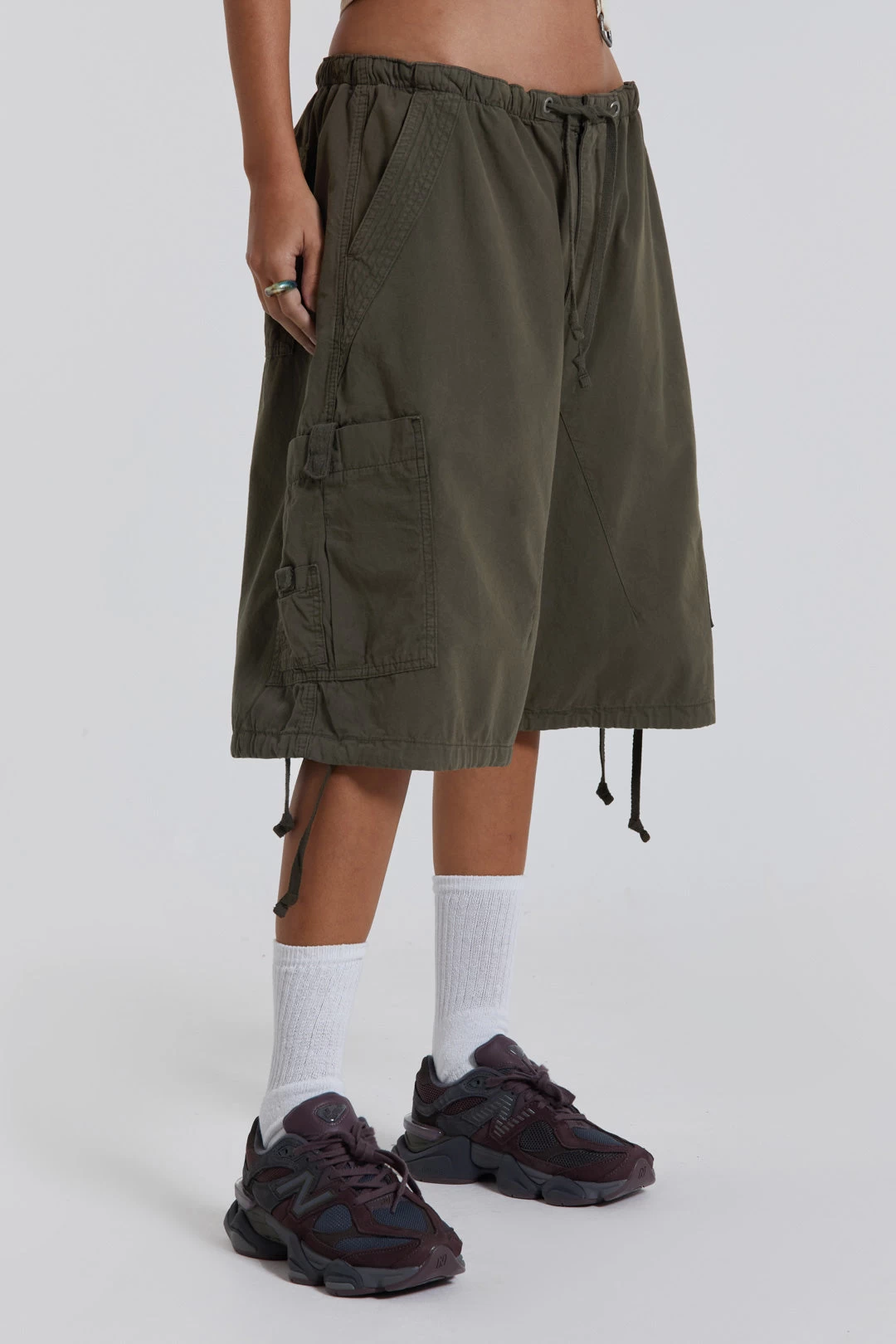 Discover the unparalleled comfort and style of the Khaki Parachute Cargo Shorts. These shorts feature an oversized fit and six-pocket styling, accompanied by an elasticated waistband and adjustable cotton drawcord for added flexibility.
