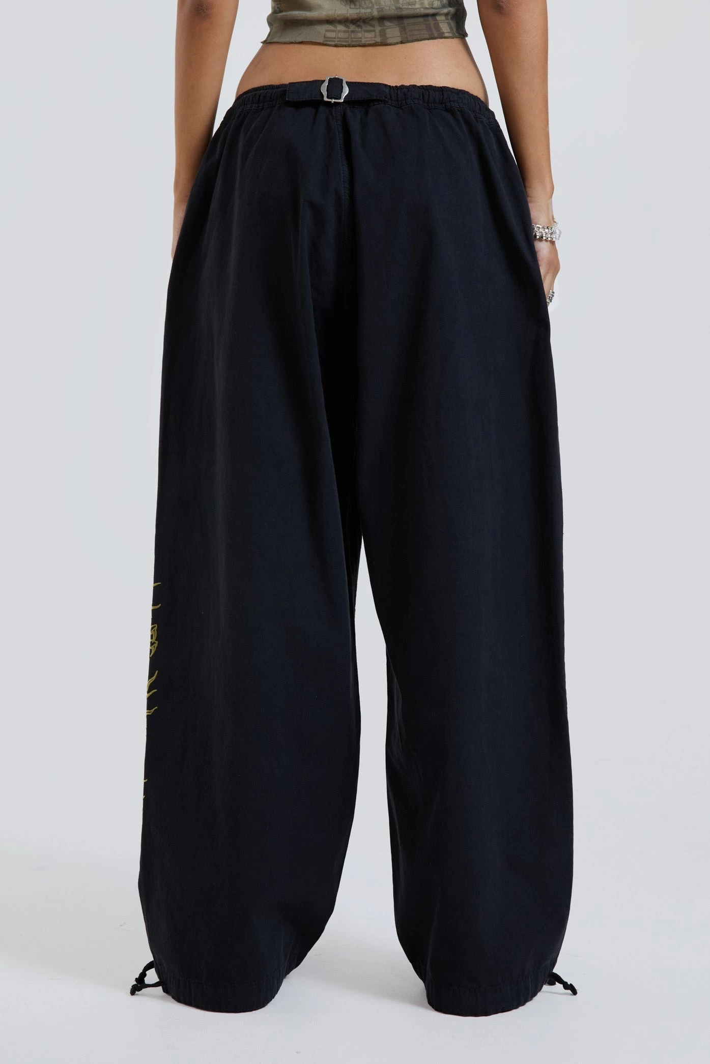 - Elasticated waistband with adjustable cotton drawcord through metal eyelets