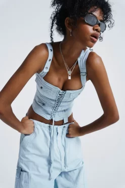 Blue Cargo Lace Up Corset Top