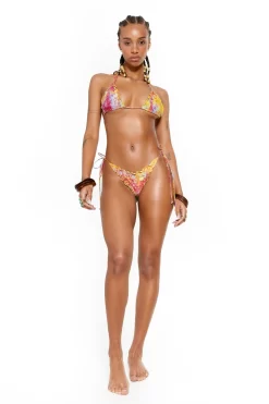 Mosaic Print Ruffle Edge Micro Bikini Bottoms With Tie Sides