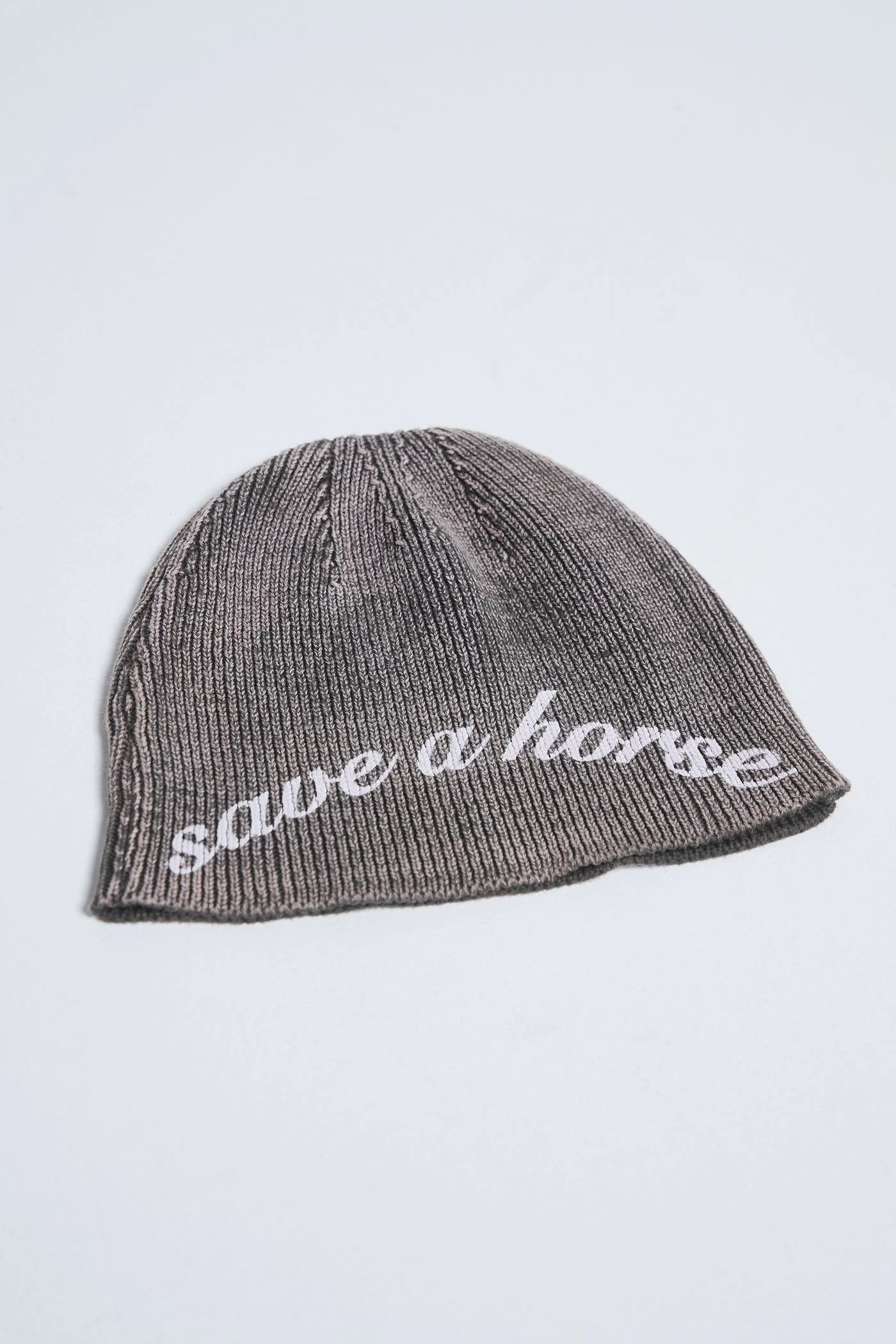 Our Save a Horse Knitted Beanie Hat is crafted from an acid wash knit featuring a œSave a horse, ride a cowboy slogan print and cast off knit edge at the hem.