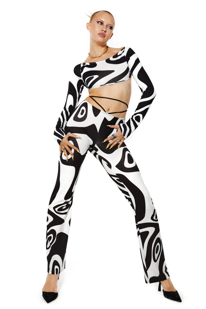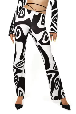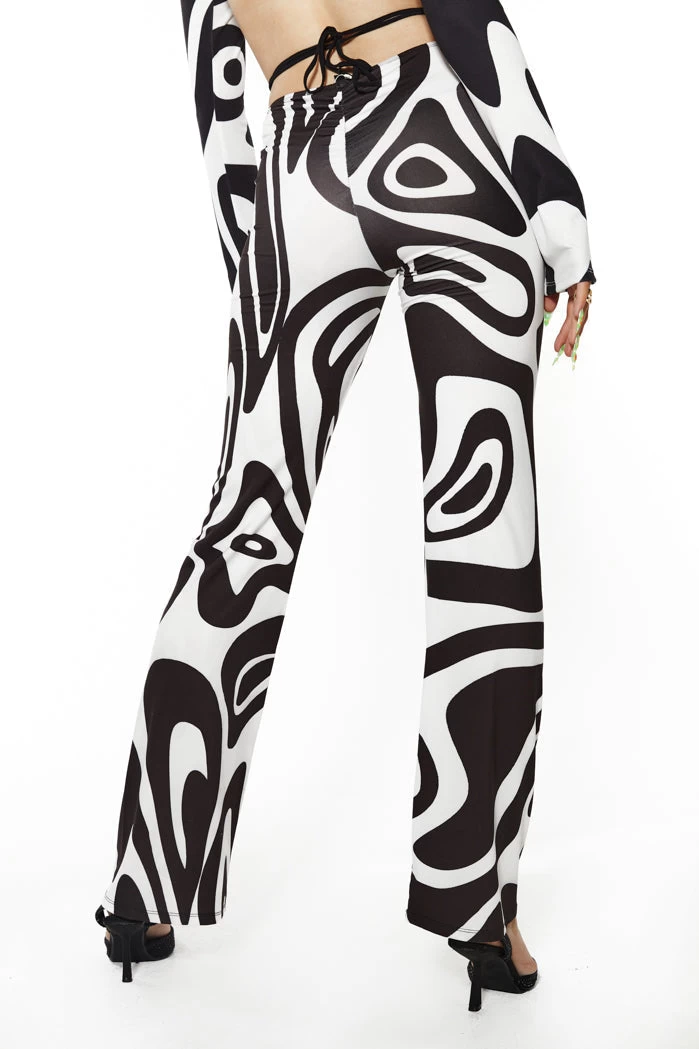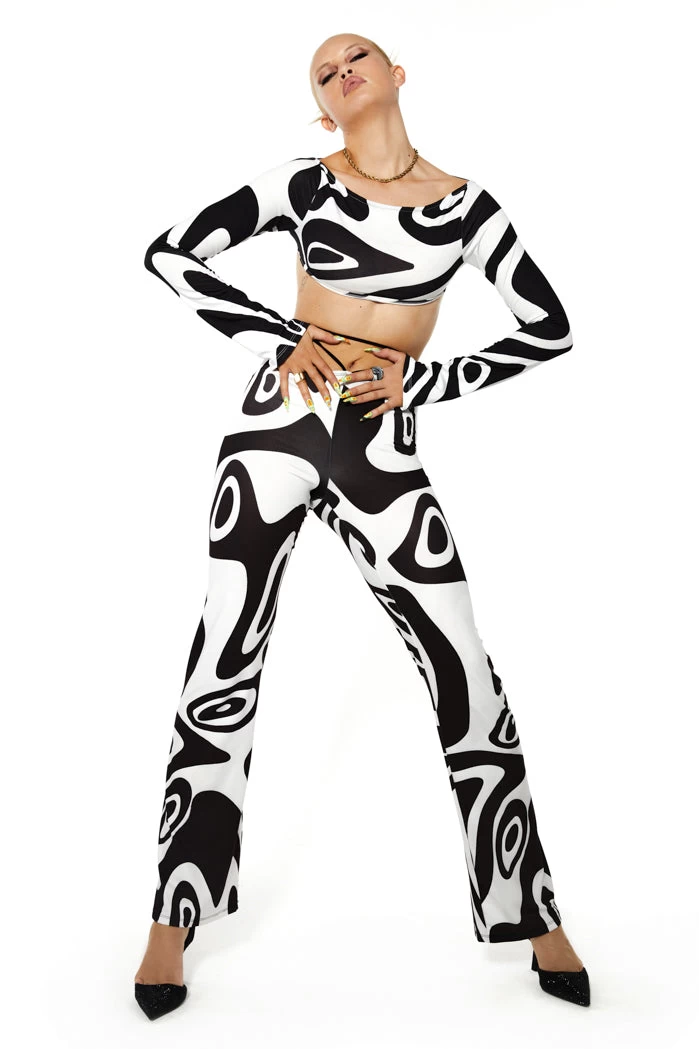 Monochrome Warp Print High Waist Bootcut Trousers
