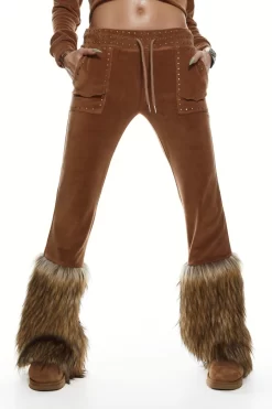 Y2K Fur Trim Studded Flared Track Pants