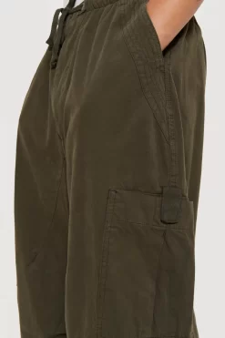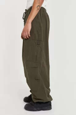 Designed with an oversized fit and a combination of metal eyelets, zip fly and adjustable cotton drawcord, our Khaki Parachute Cargo Pants deliver refined luxury and ultimate comfort. Details such as a pleated knee and inside leg darts ensure a perfect fit, while a six-pocket styling and a unique airpod pocket provide functional convenience. Elevate any look with this timeless and classic silhouette.