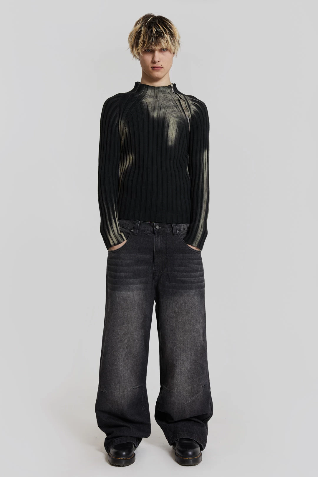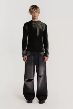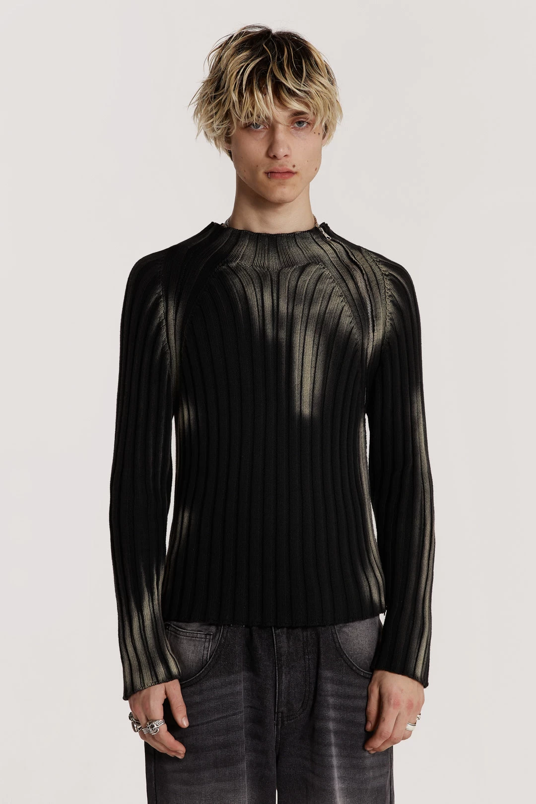 Introducing Fracture – the latest menswear capsule from Jaded London. Inspired by mid 2000’s grunge, the collection features acid-washed ribbed knits, tattoo-style graphics in tight-fitting silhouettes, and heavy bleached denims.