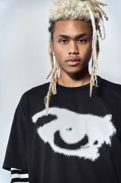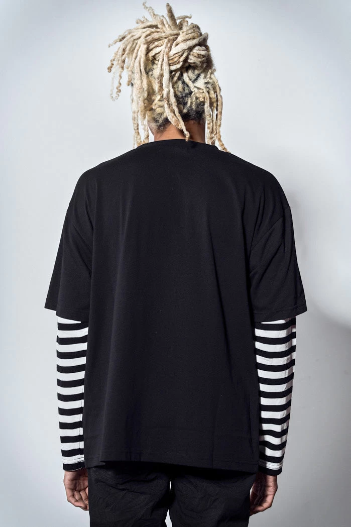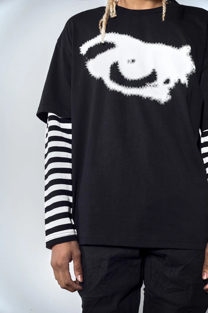 Blurred Eye Double Layer Mock Long Sleeve T-Shirt