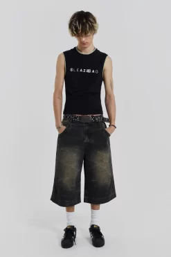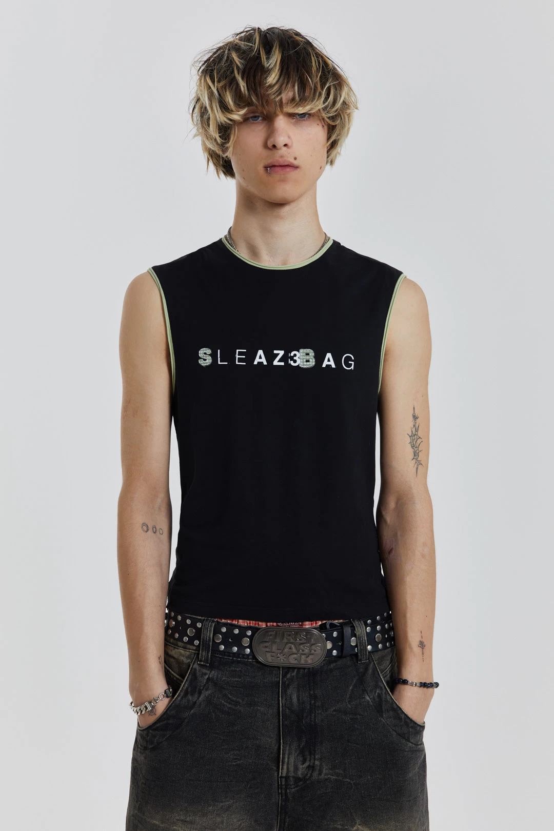 The Sleazebag Tank Top is crafted from heavy washed single jersey and features a shrunken tank top shape with a raw edge neck and sleeve binding. Sporting a œSleazebag print, the tank is finished with a woven check applique.