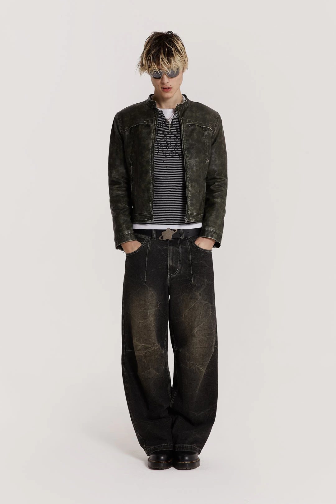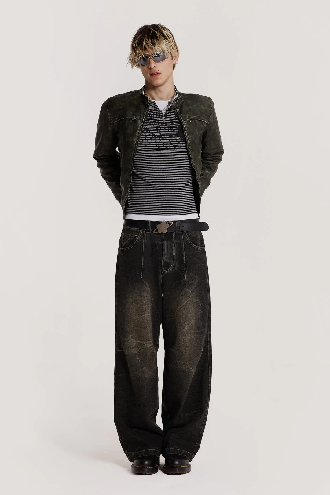 Introducing Fracture – the latest menswear capsule from Jaded London. Inspired by mid 2000’s grunge, the collection features acid-washed ribbed knits, tattoo-style graphics in tight-fitting silhouettes, and heavy bleached denims.