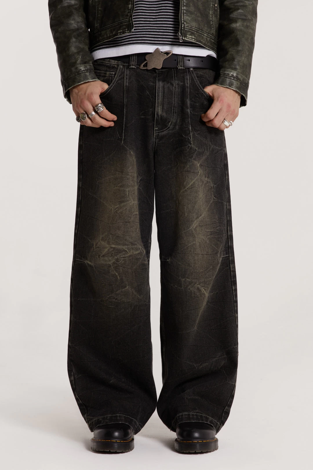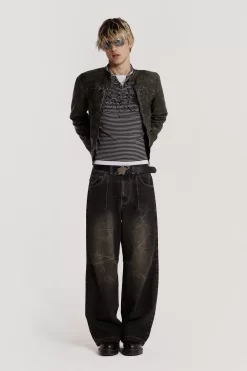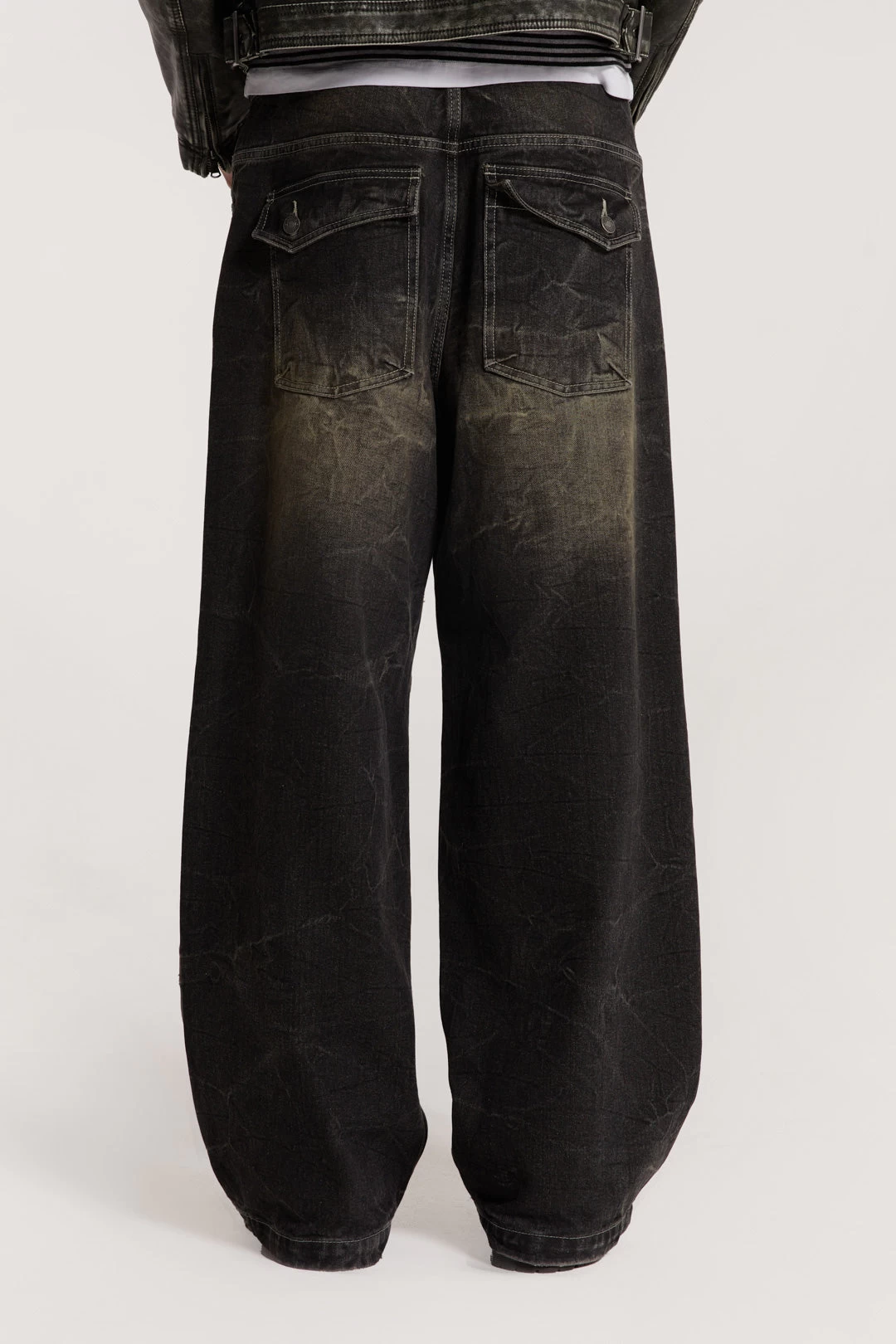 Our take on the iconic baggy silhouette loved throughout the 90’s and early 2000’s in skate, hip hop & rave subcultures, with an updated, modern twist. These grey ultra wide leg jeans are crafted from heavyweight washed black denim.