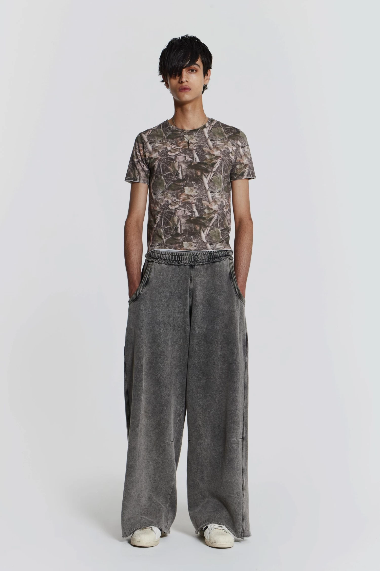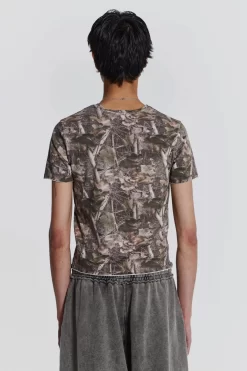 The Woodland Shrunken Tee combines a vintage wash and raw edge finish. Designed with an all -over woodland camouflage print this t-shirt has a slightly cropped, shrunken fit along with short sleeves.